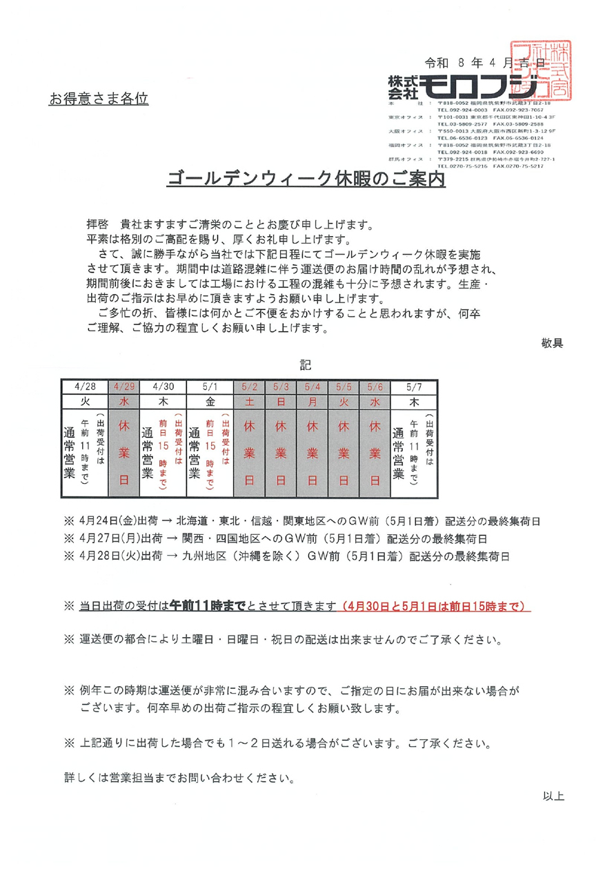 多種多様な既製品の包装資材を1枚から購入出来ます。